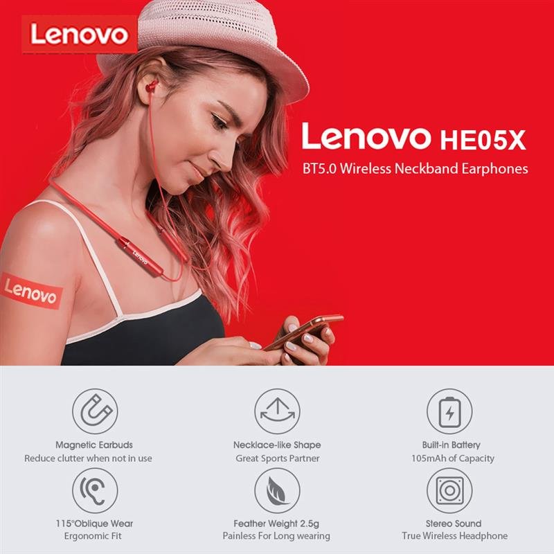 Lenovo HE05X Magnetic Neckband Bluetooth Earphone In Bangladesh