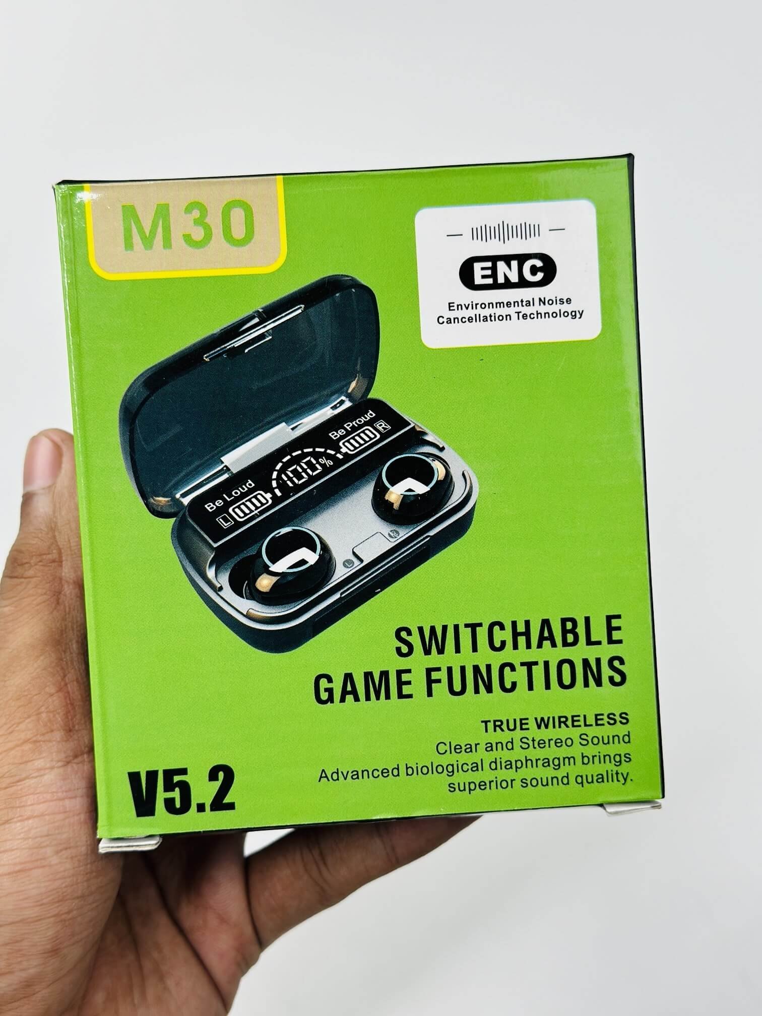 The M30 ENC Bluetooth TWS is a wireless earbud that is perfect for listening to music, taking calls, or watching videos on the go. It features Entertainment noise cancellation (ENC) technology that blocks out background noise, so you can enjoy your music or videos in peace.