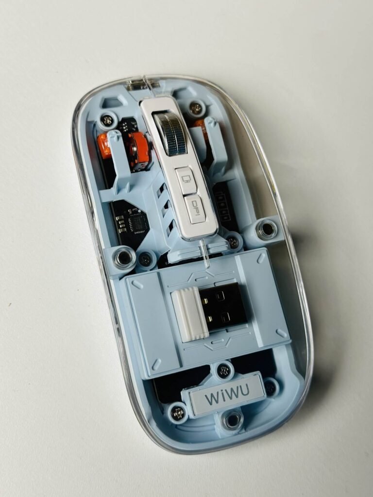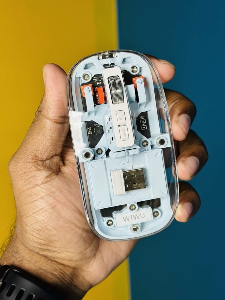 The WIWU Crystal Transparent Wireless Mouse 2.4G connects to your computer using a 2.4GHz wireless connection, which provides a reliable and stable connection. It also has a built-in rechargeable battery, which provides up to 12 months of battery life on a single charge.